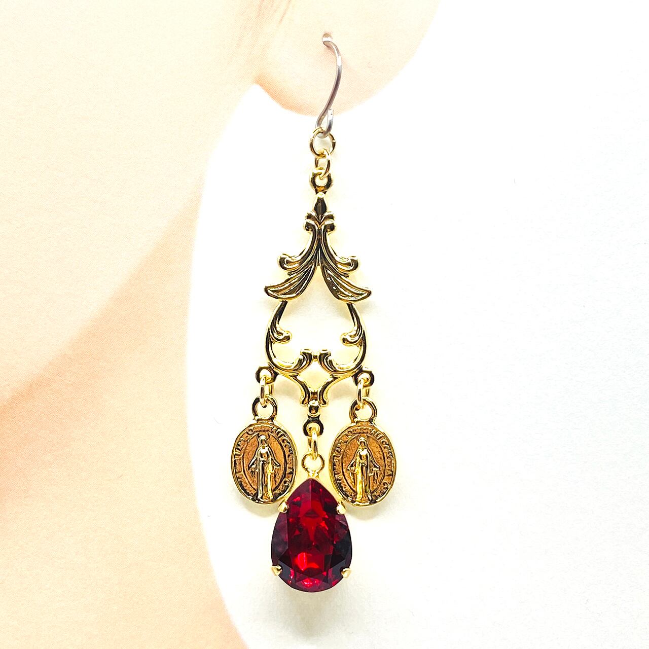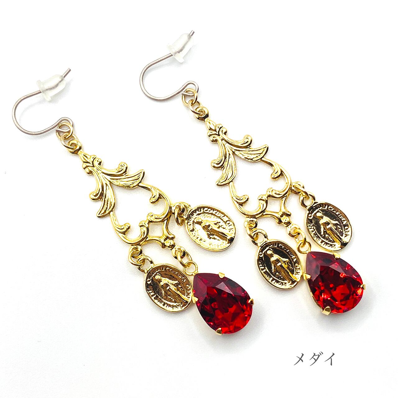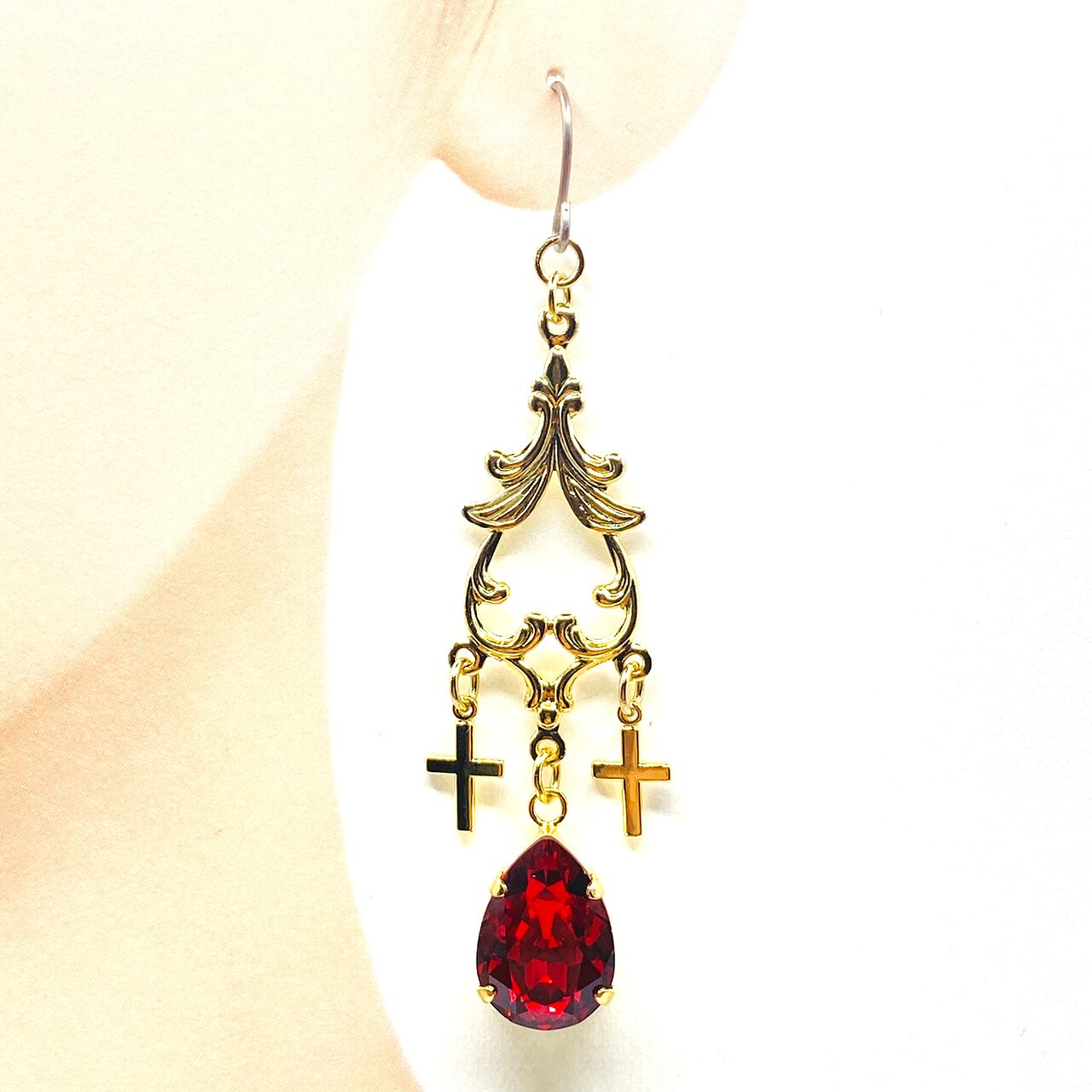 スワロフスキーと十字架orメダイチャームのピアス(イヤリング交換可)です。