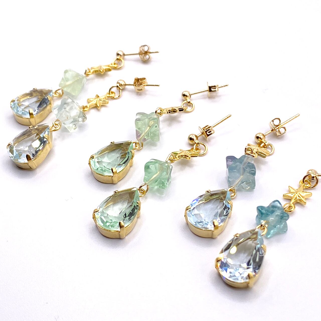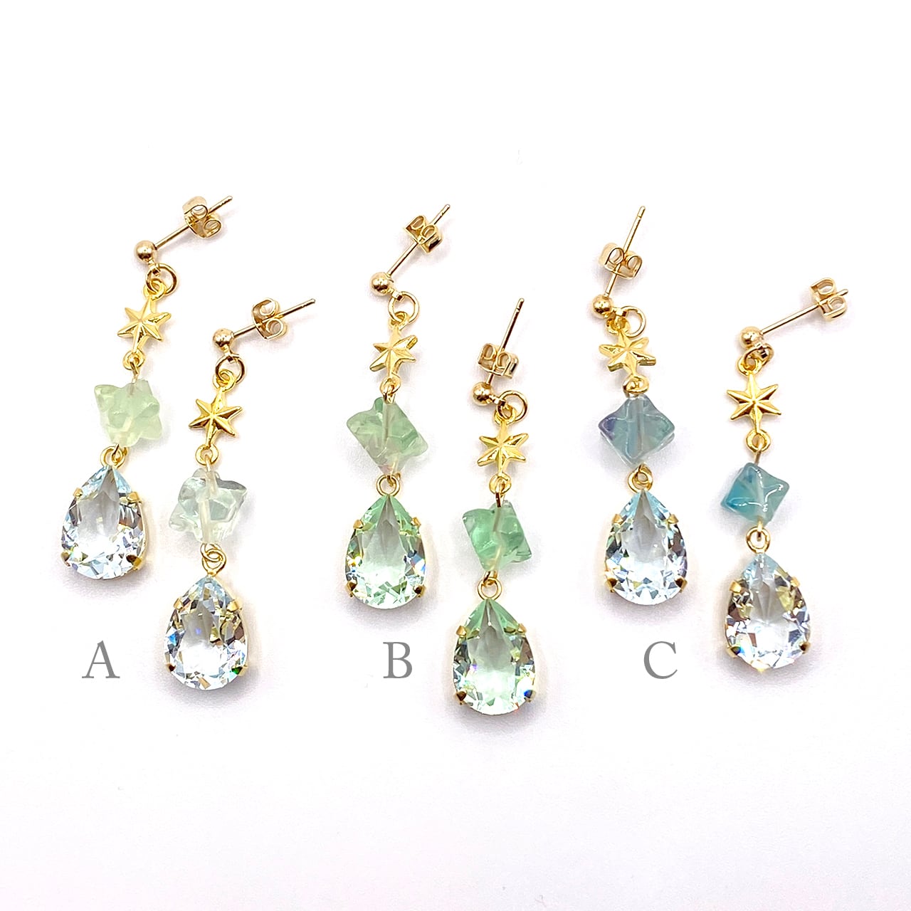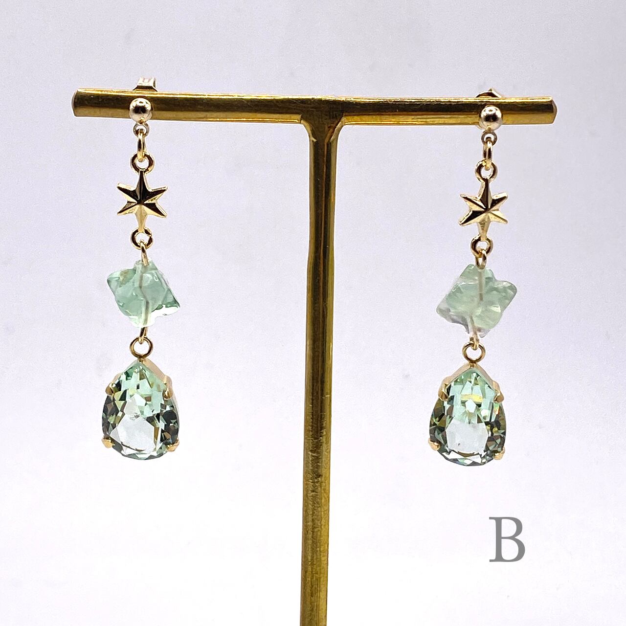 スワロフスキーとフローライト、チャームのピアス/イヤリングです。