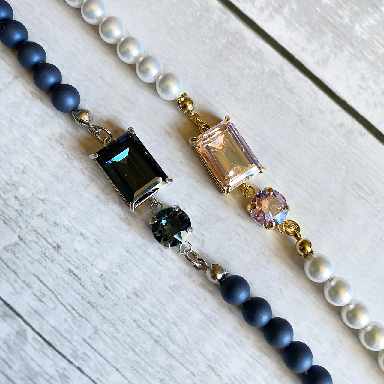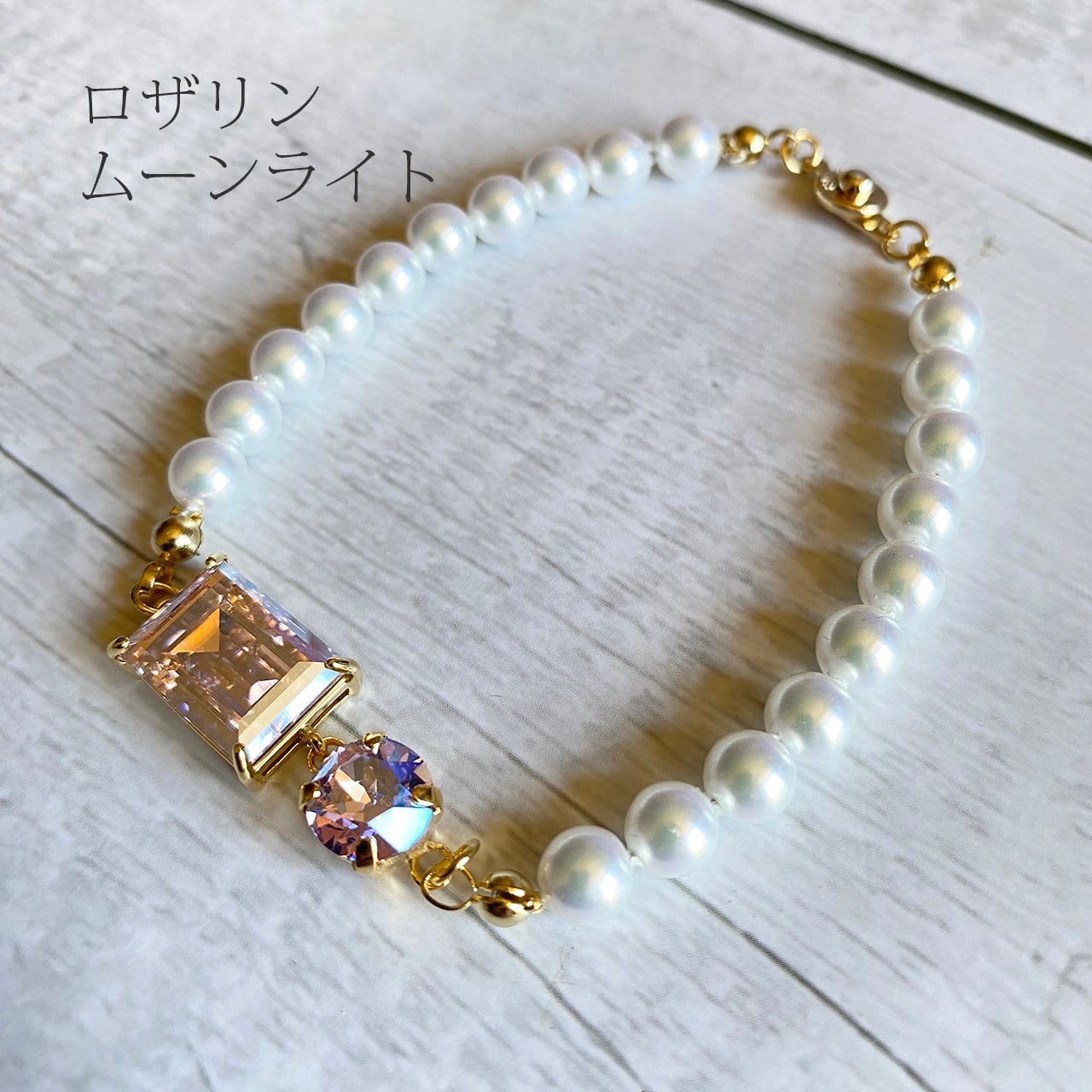 貴和クリスタルと樹脂パールを使ったブレスレットです。