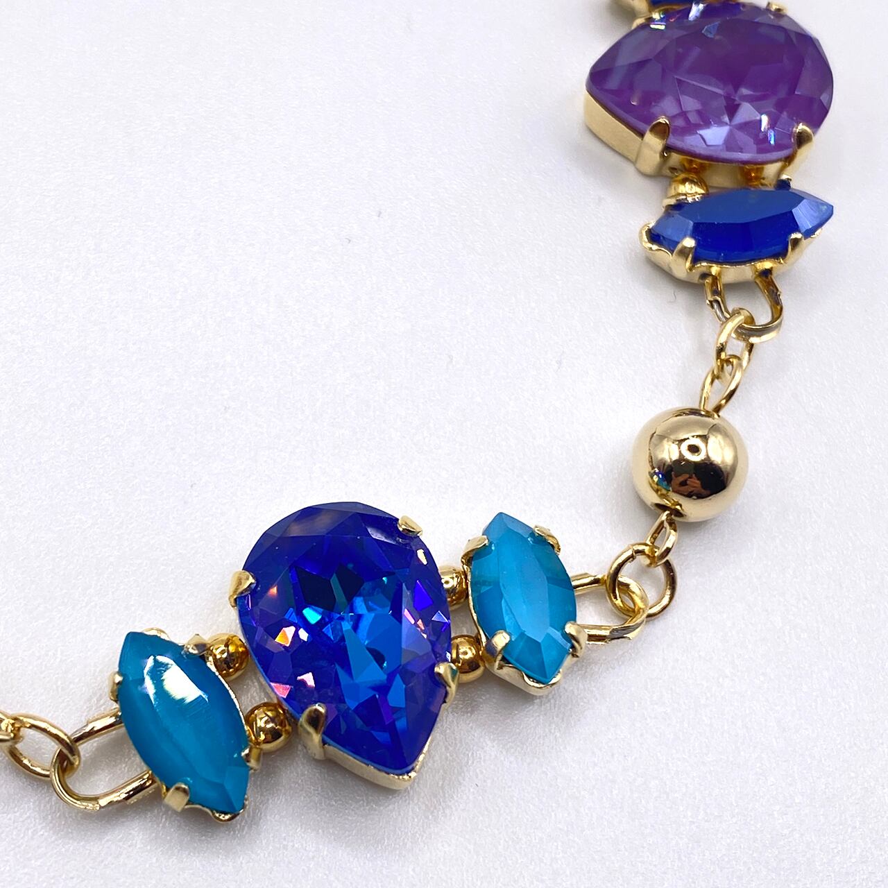貴和クリスタル(クリスタルロイヤルブルーディライト、クリスタルパープルイグナイト、クリスタルロイヤルブルー、クリスタルアズールブルー)を使ったブレスレットです。