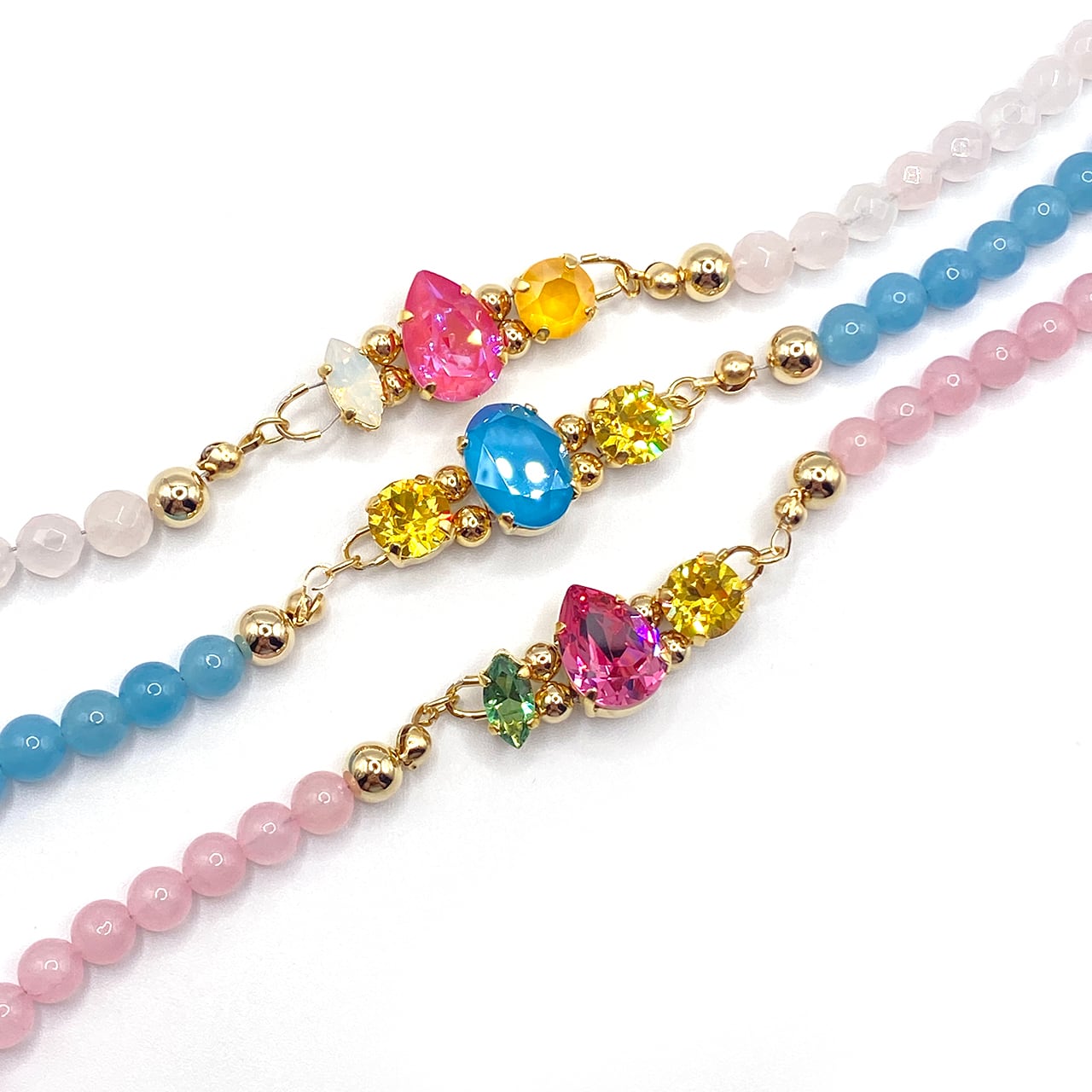 クリスタルアズールブルー&イエローにはアクアマリンを使用しています。