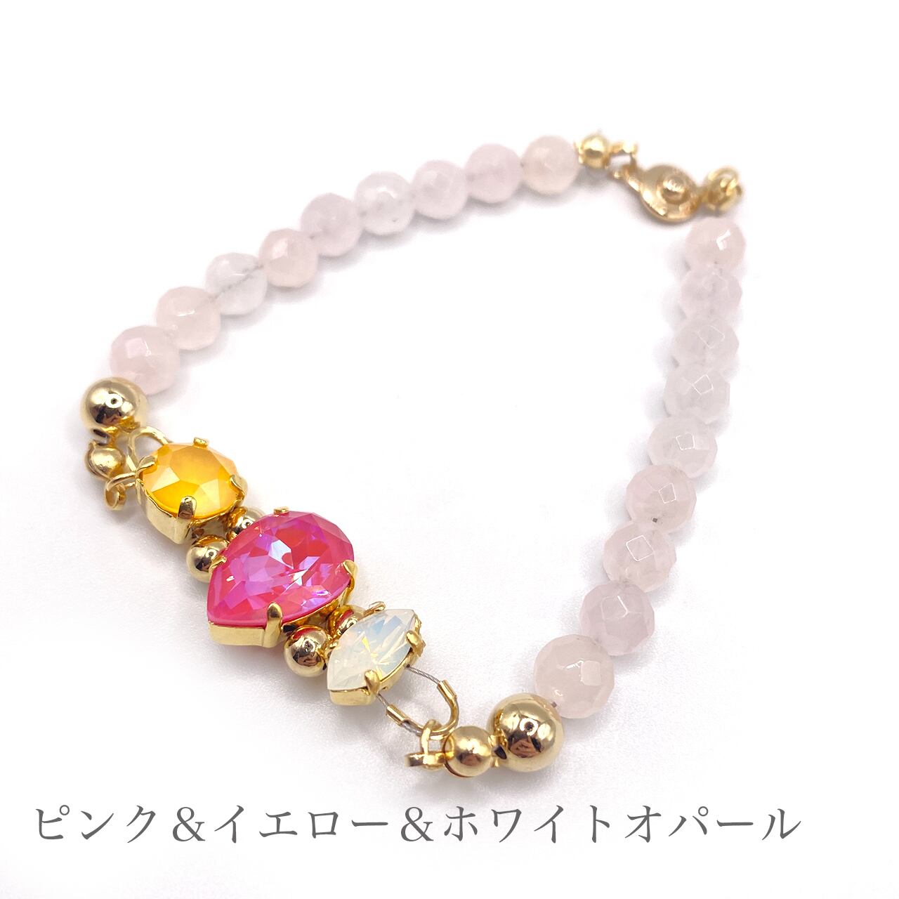 ピンク&イエロー&ホワイトオパールにはローズクォーツ64面カット、