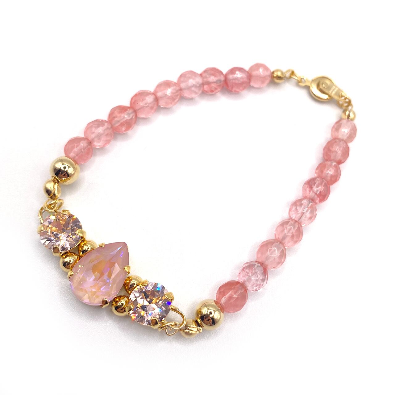 ピンク&アンティークピンクにはチェリークォーツ64面カットを使用しています。