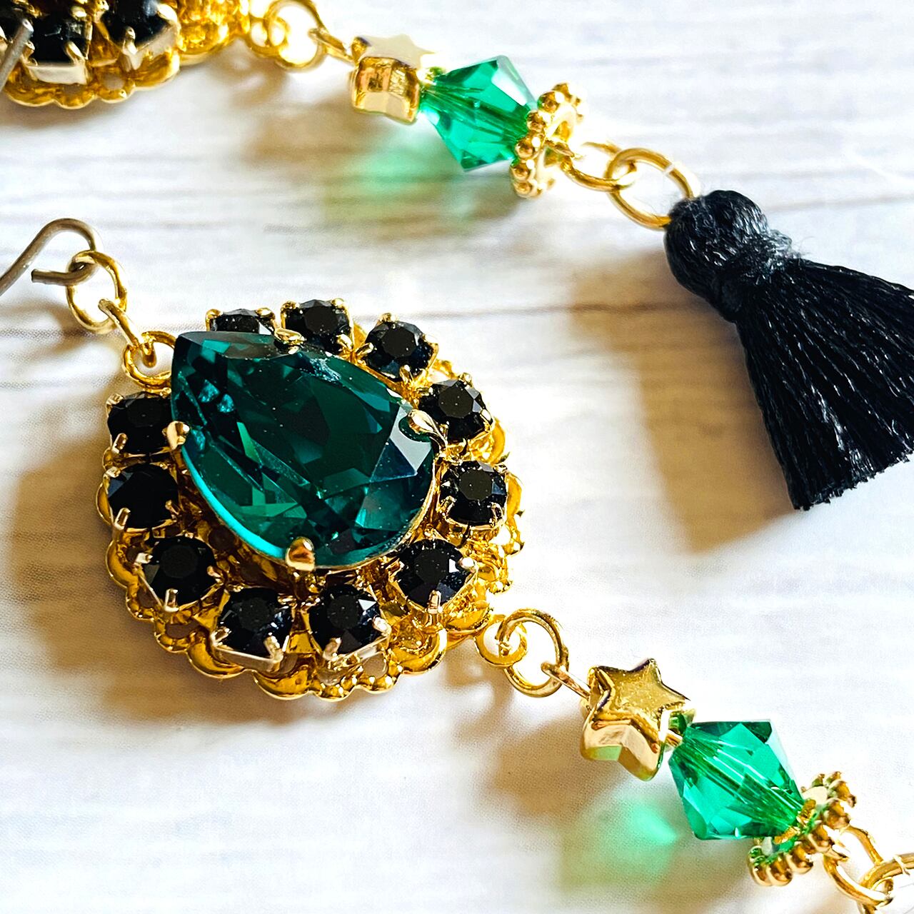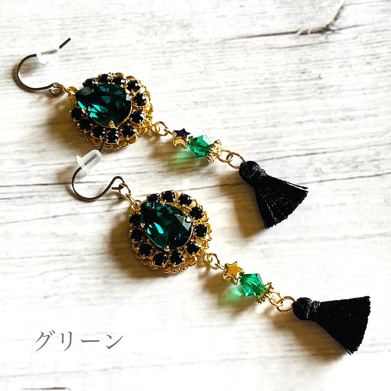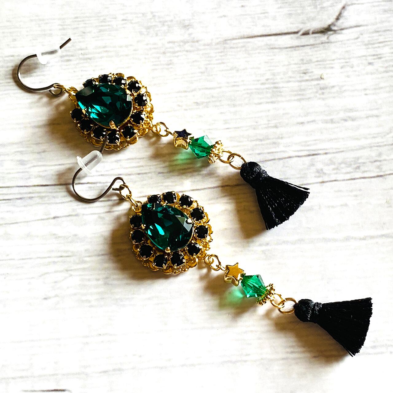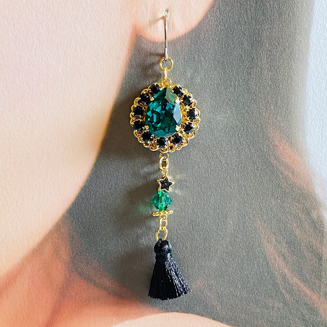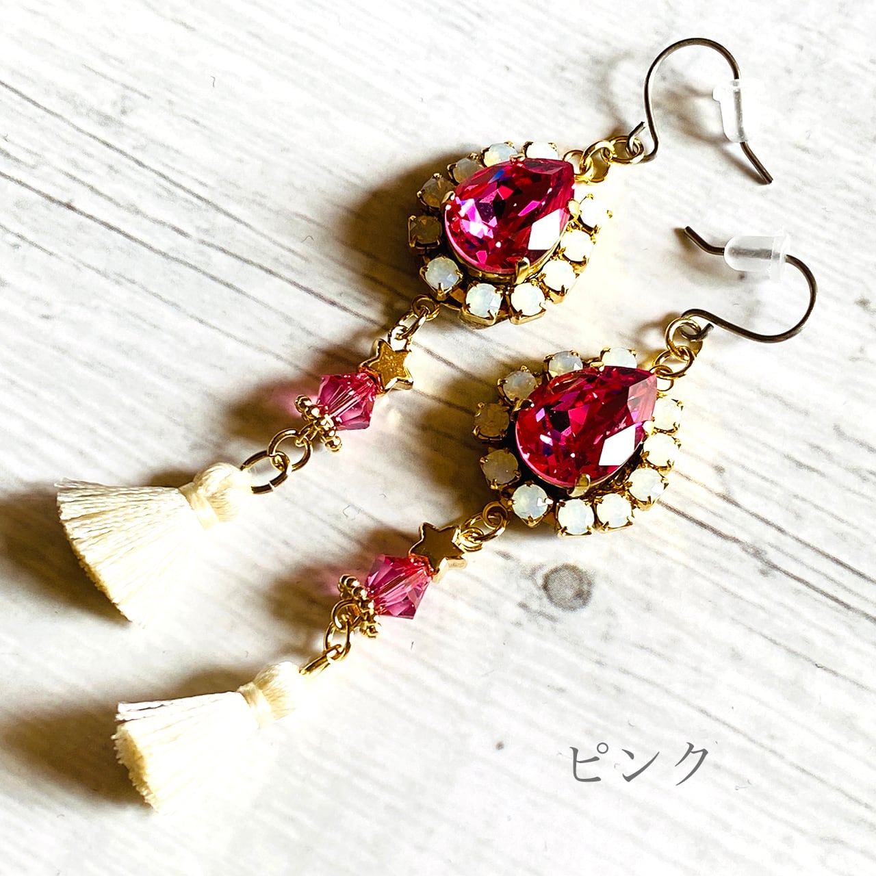 貴和クリスタルとタッセルのピアス(イヤリング交換可能)です。