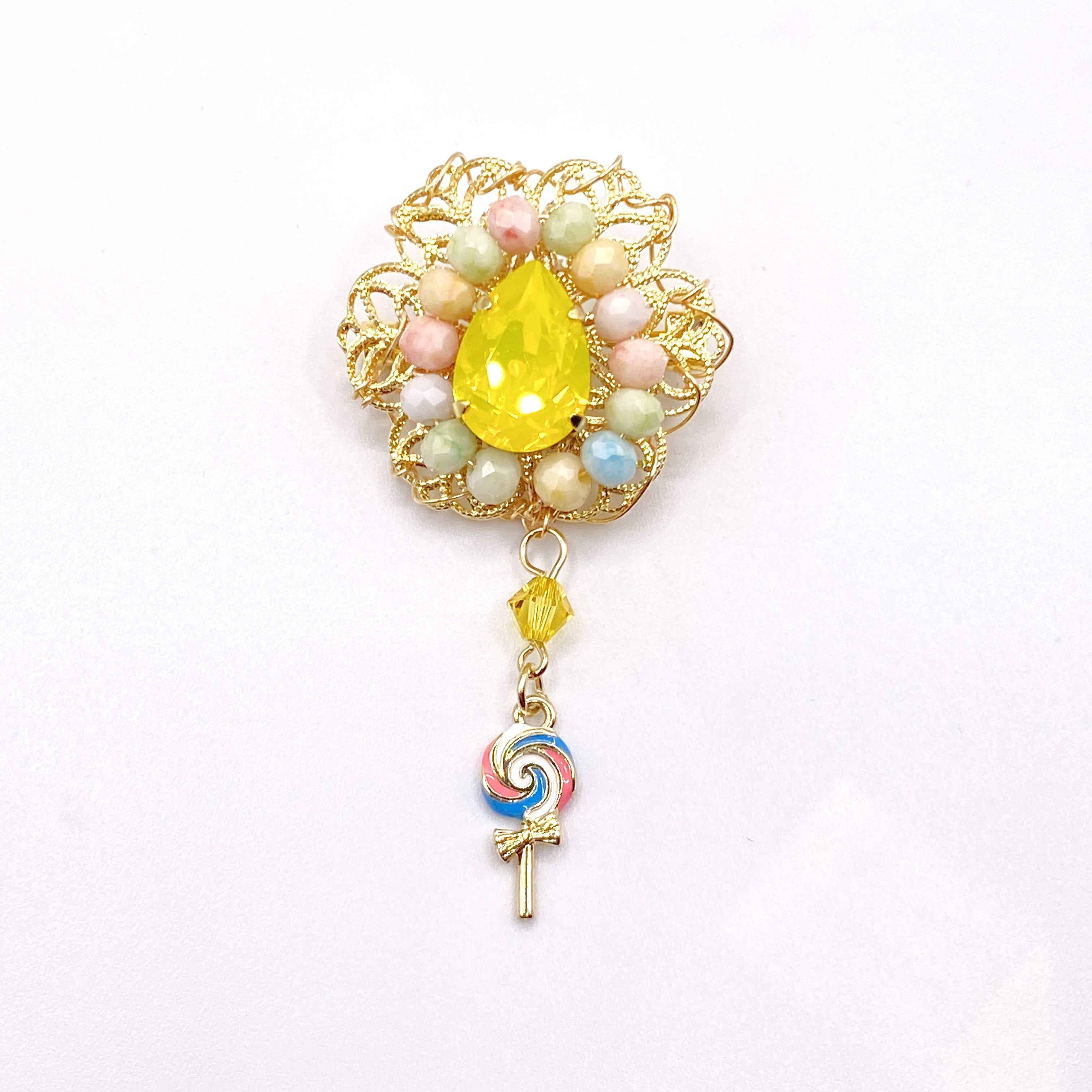 貴和クリスタルとガラスビーズ、チャームなどのブローチです。