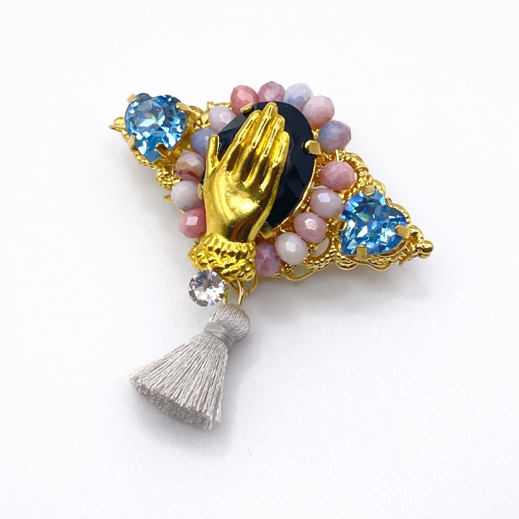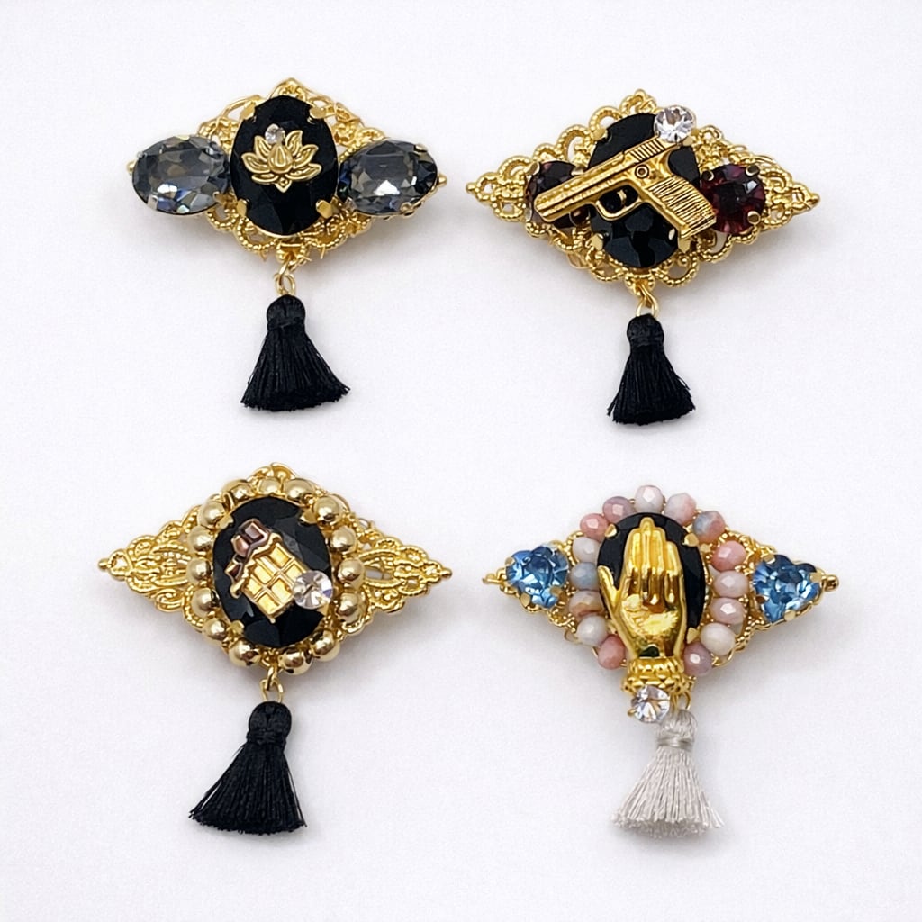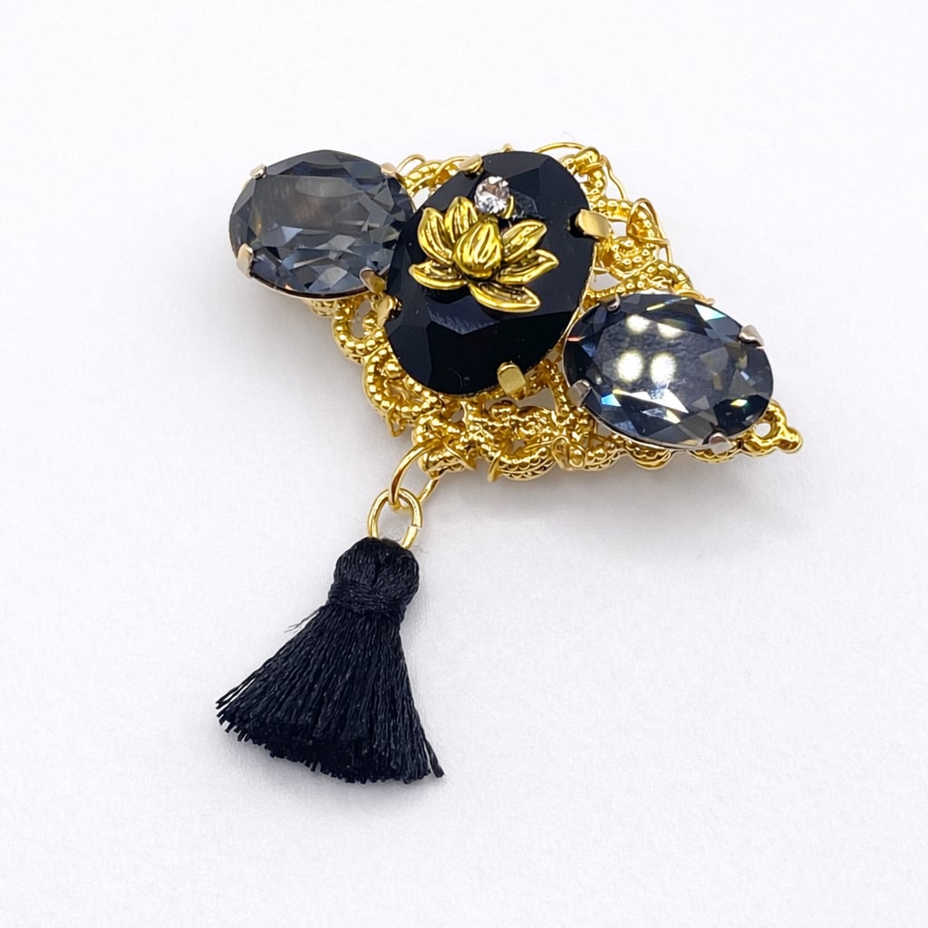 貴和クリスタルとチャームなどのブローチです。