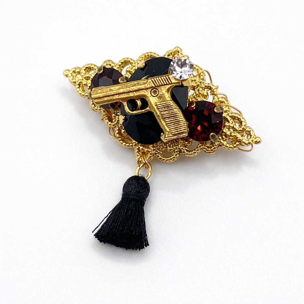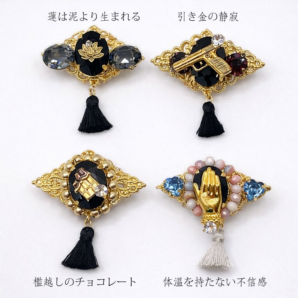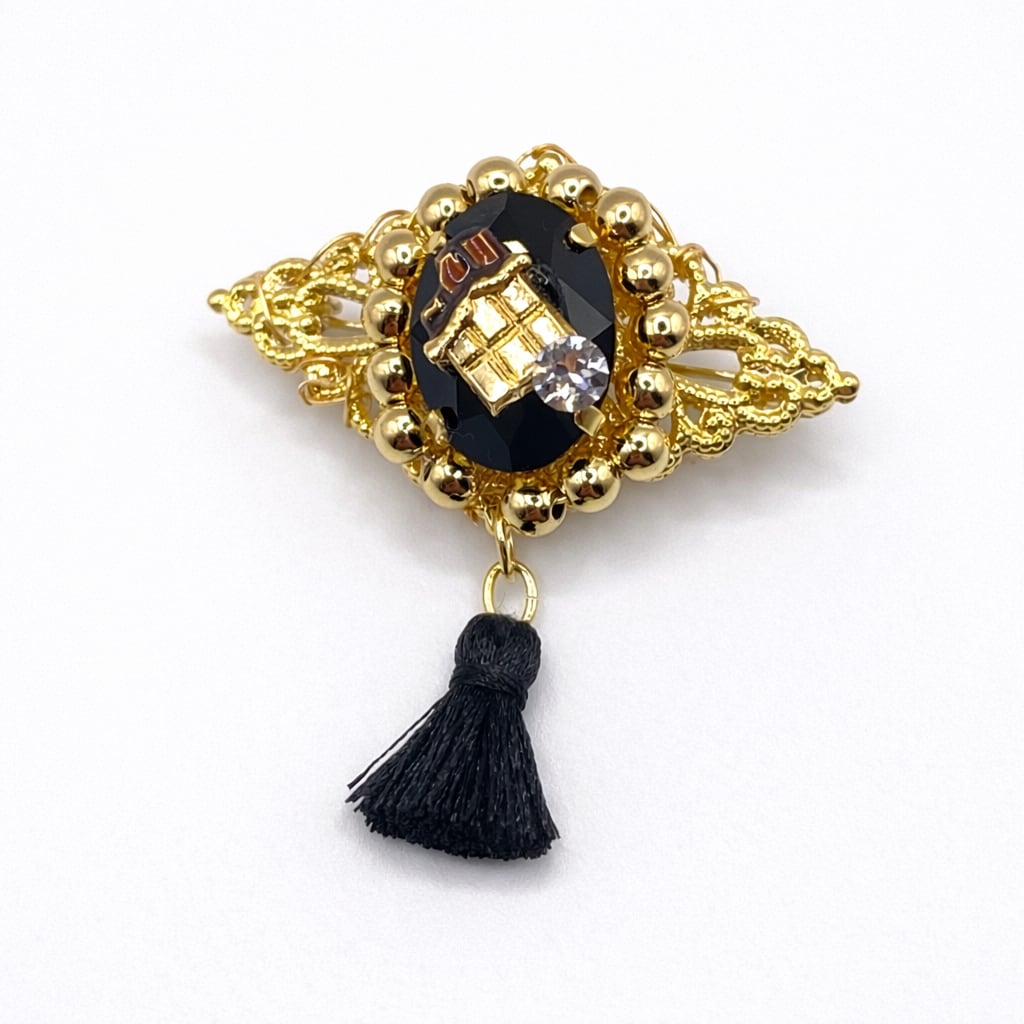 貴和クリスタルとチャームなどのブローチです。