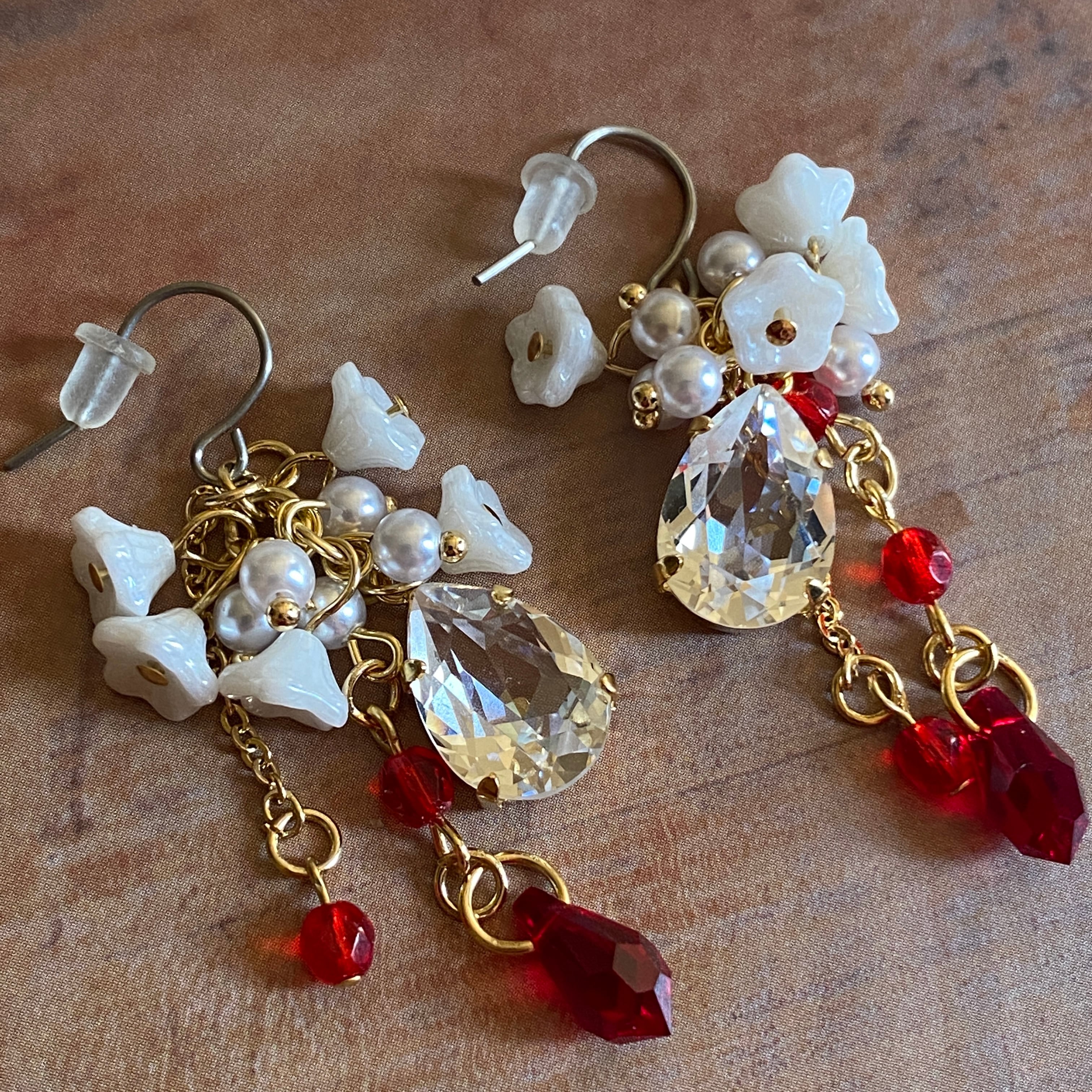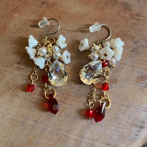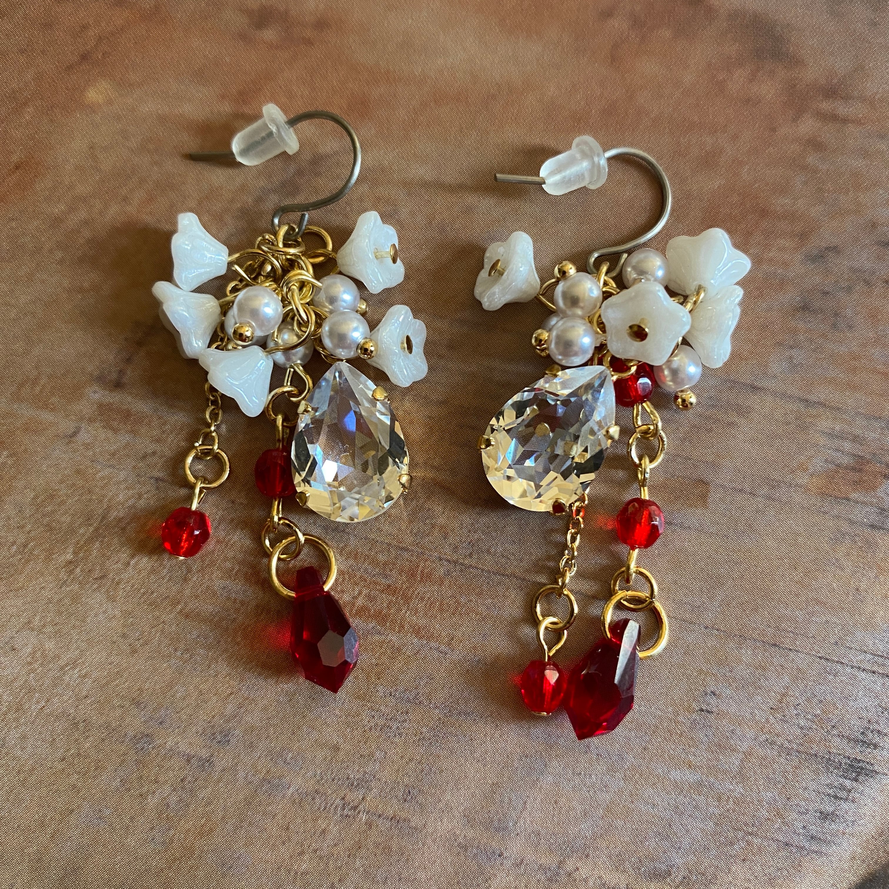 貴和クリスタルとチェコビーズなどのピアス(イヤリング交換可能)です。