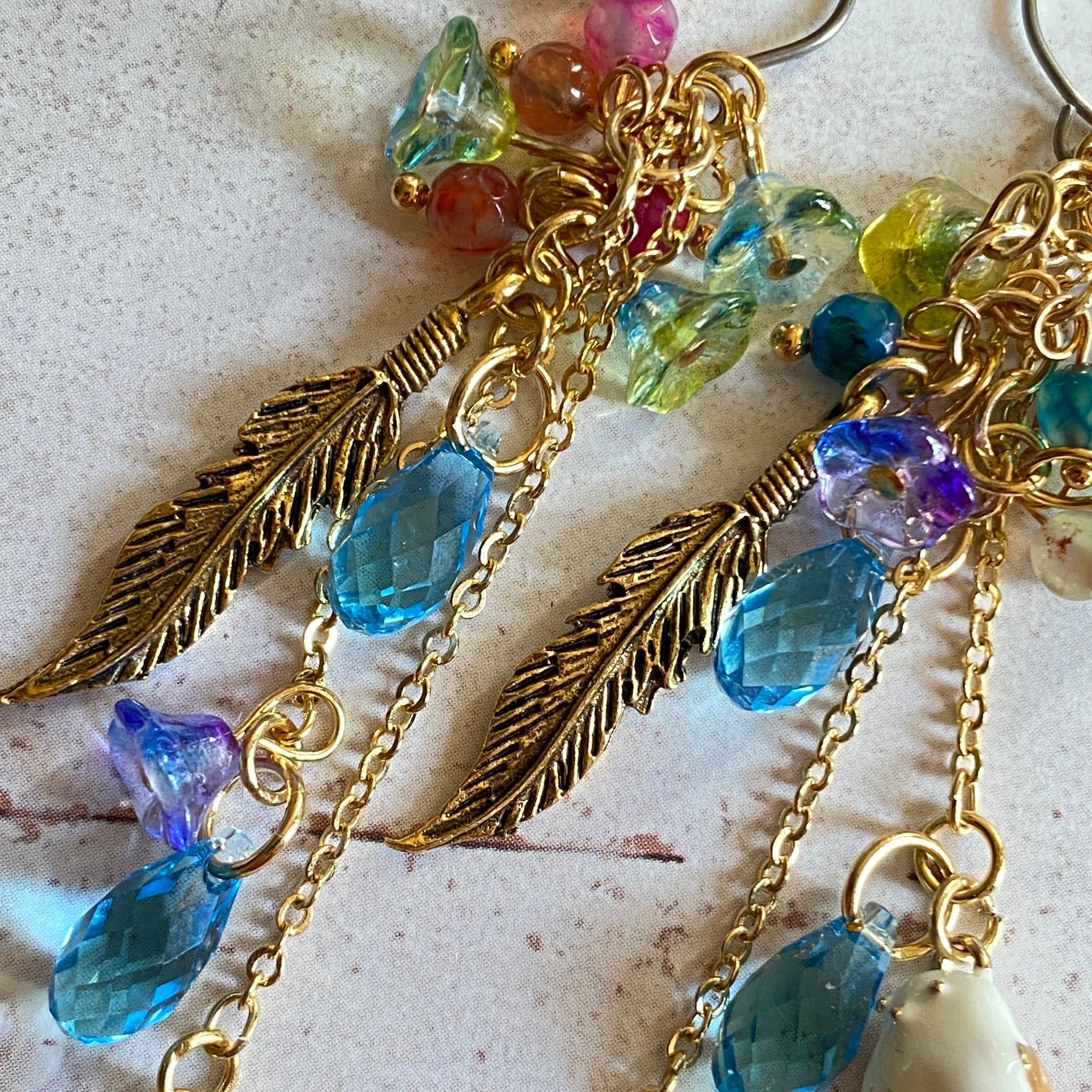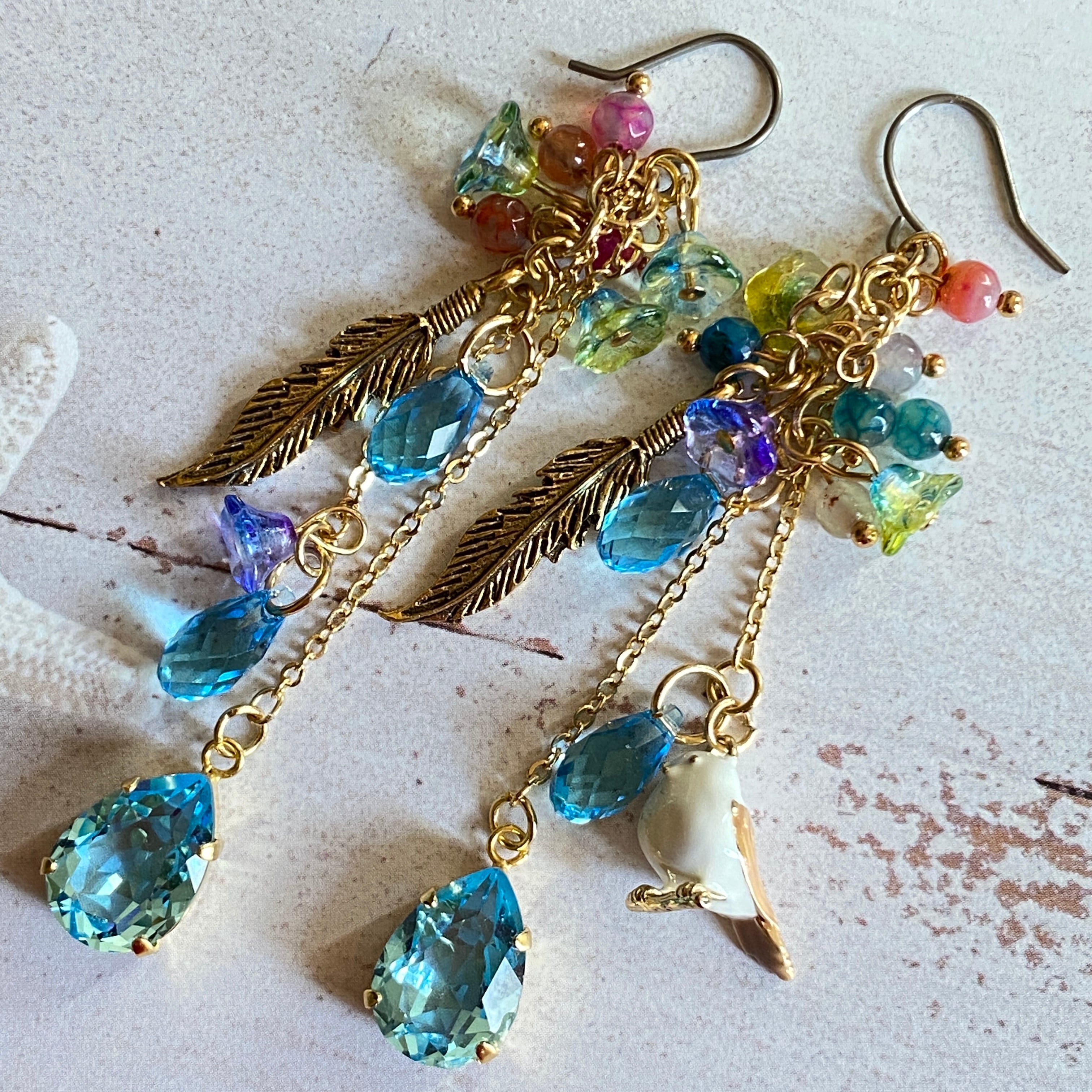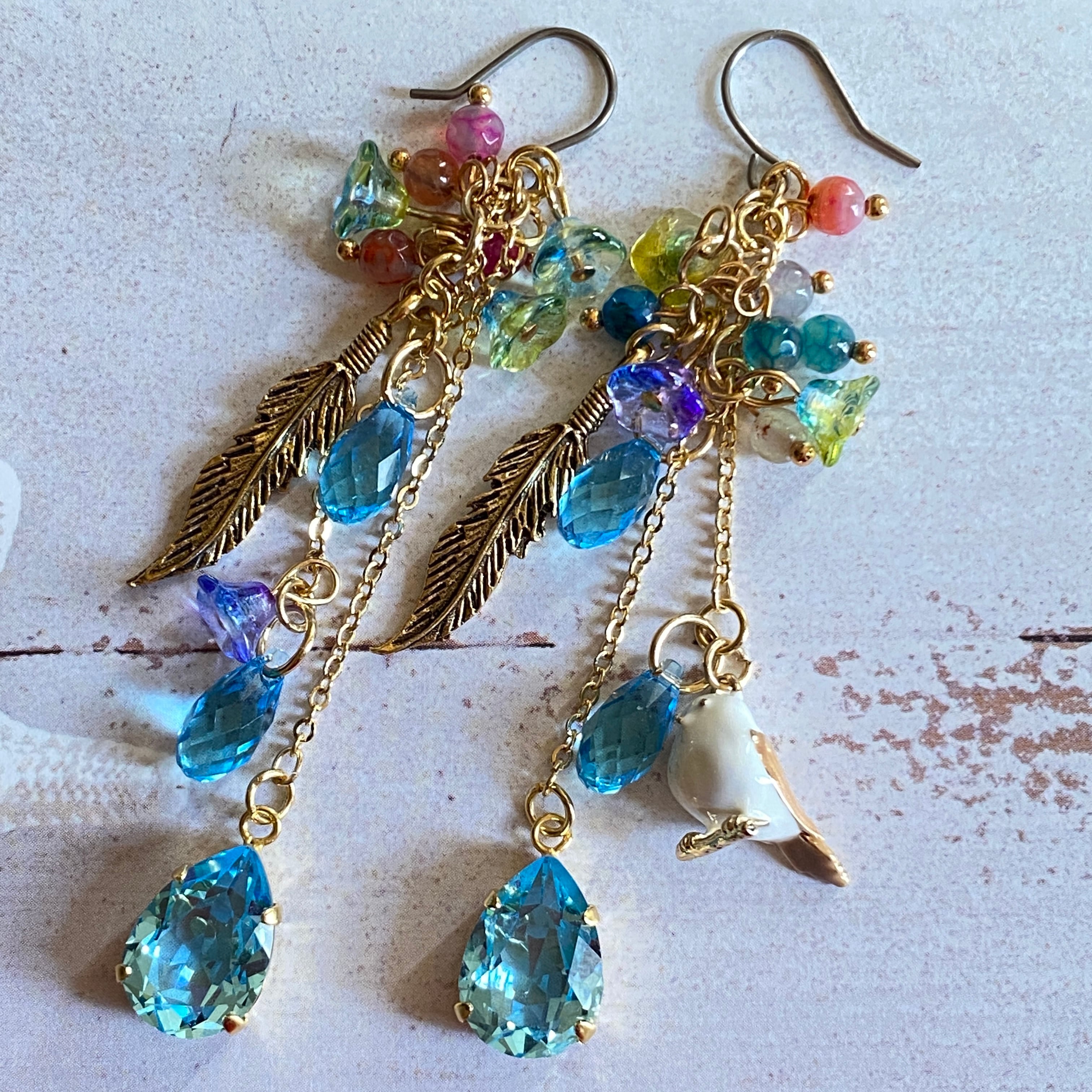 貴和クリスタルと天然石、チェコビーズ、チャームなどのピアス(イヤリング交換可能)です。