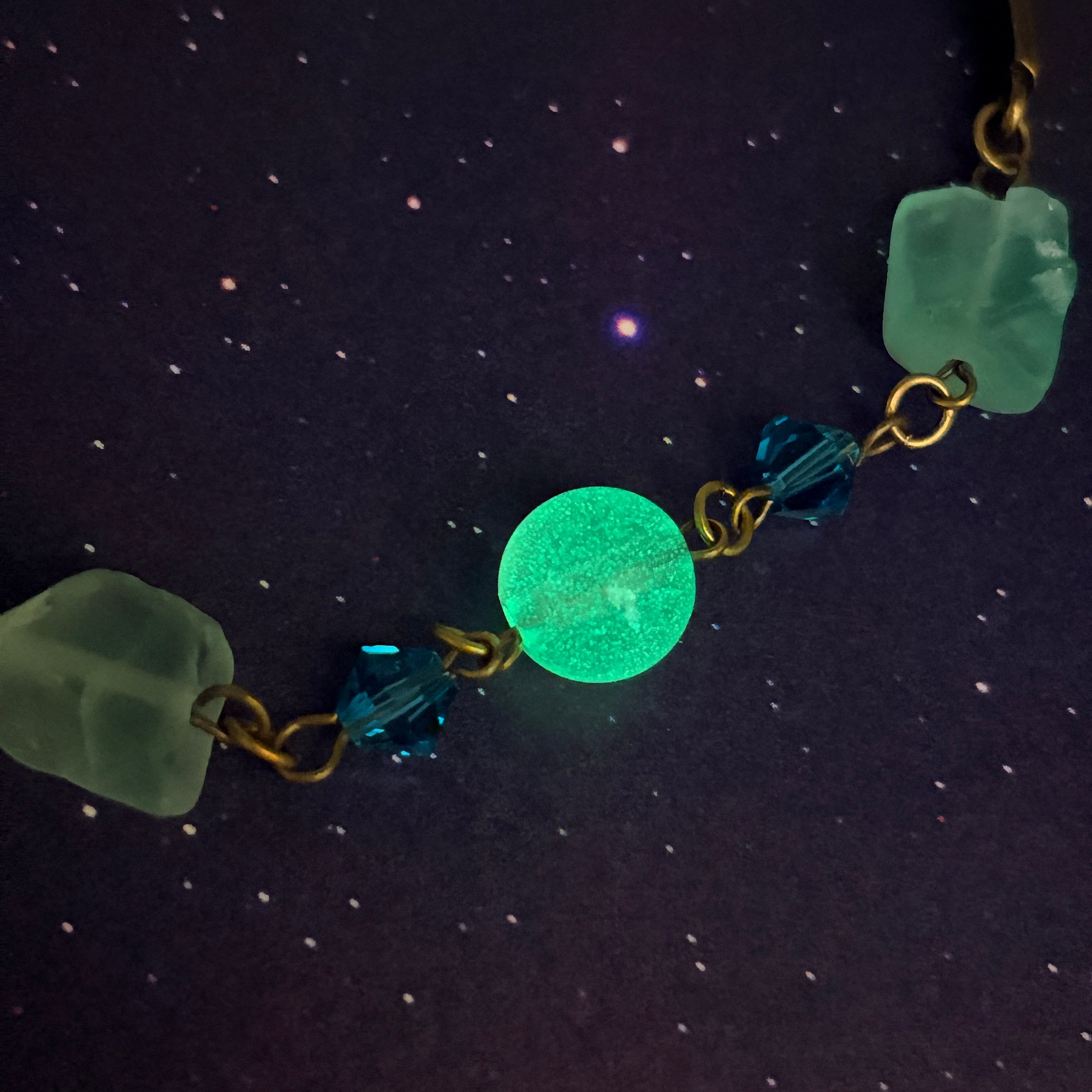故郷を救うために宇宙でがんばるお話です。 フローライトと貴和クリスタル、蓄光ビーズのブレスレットです。 蓄光ビーズは強い光を当てると暗闇で光ります。 【サイズ】 直径:約8センチ(アジャスターあり) ※ゆったりめです。