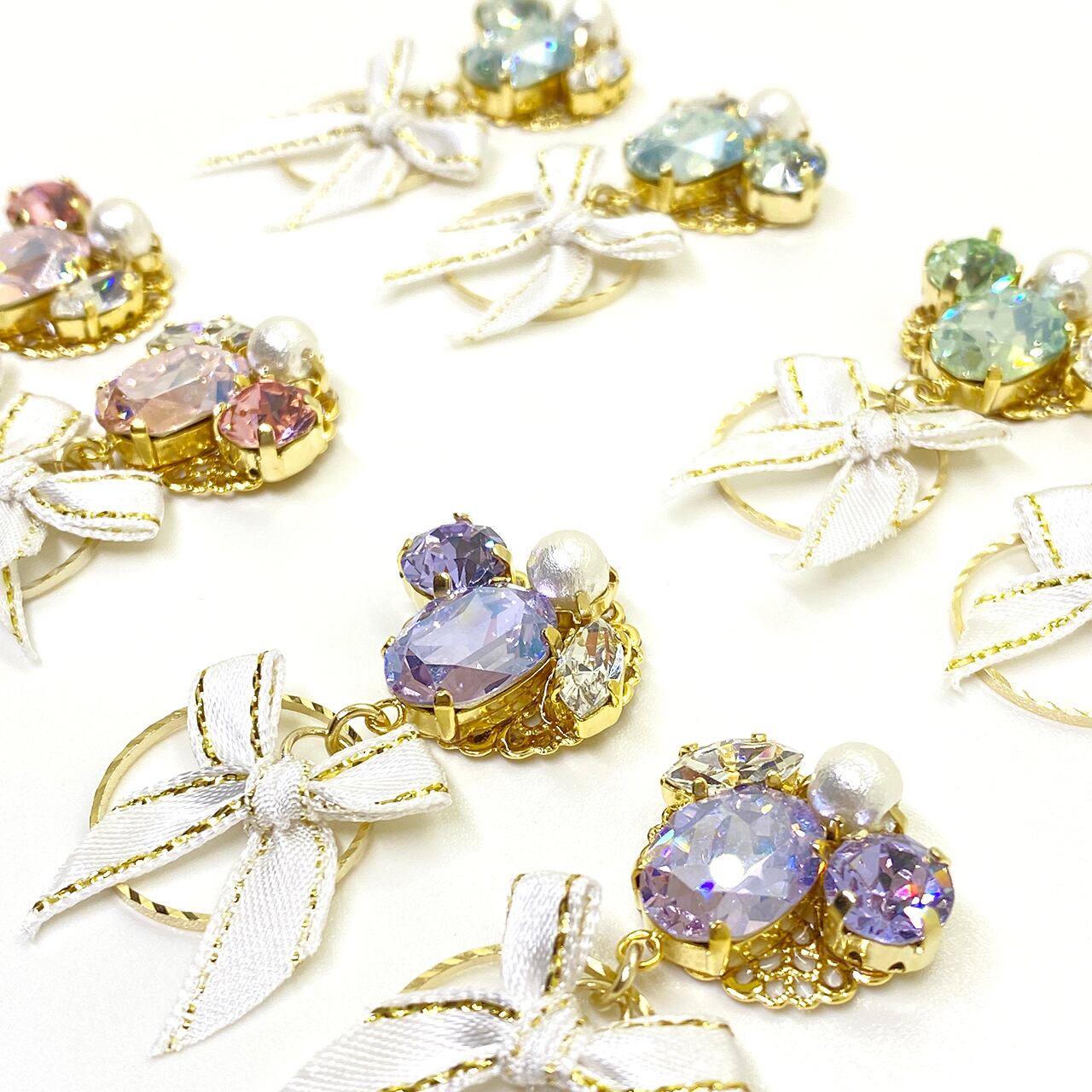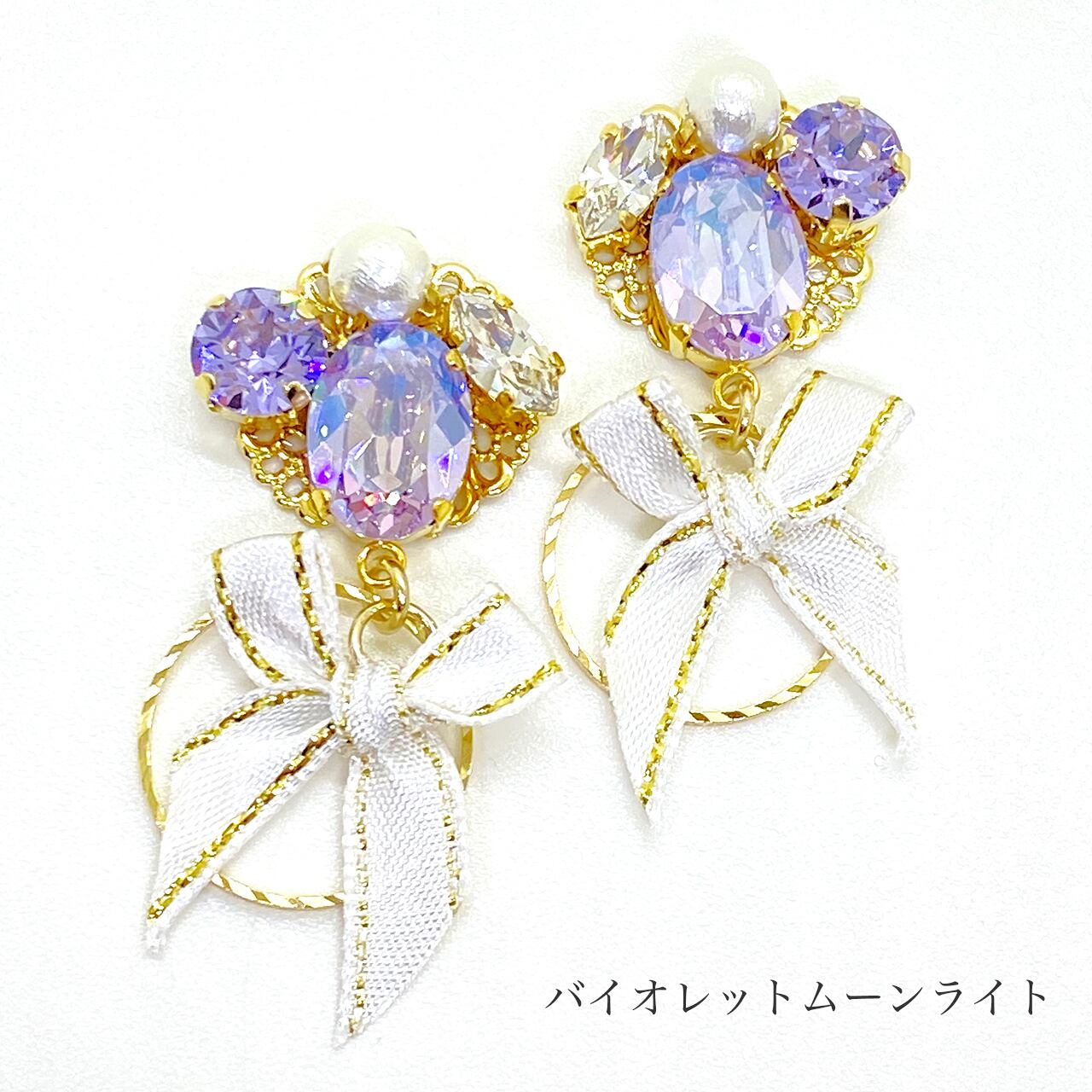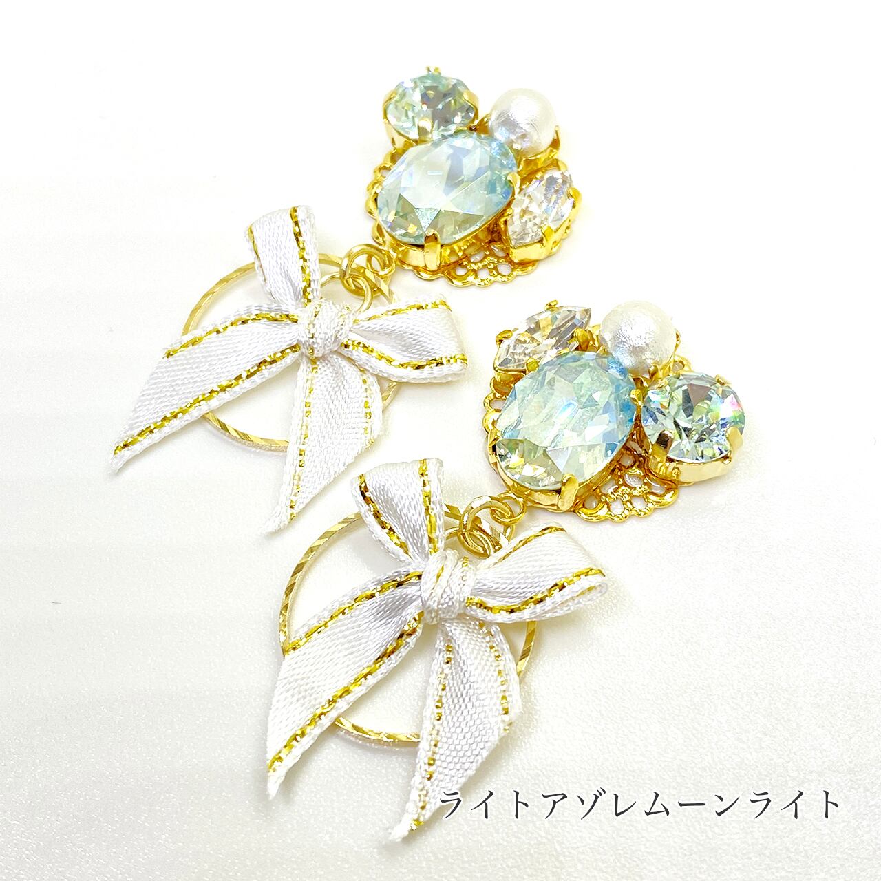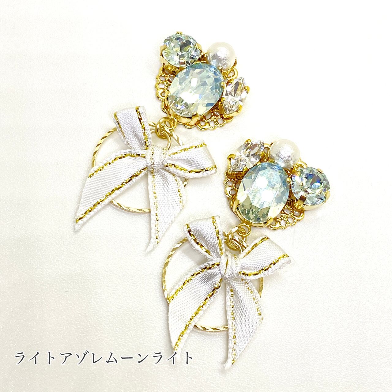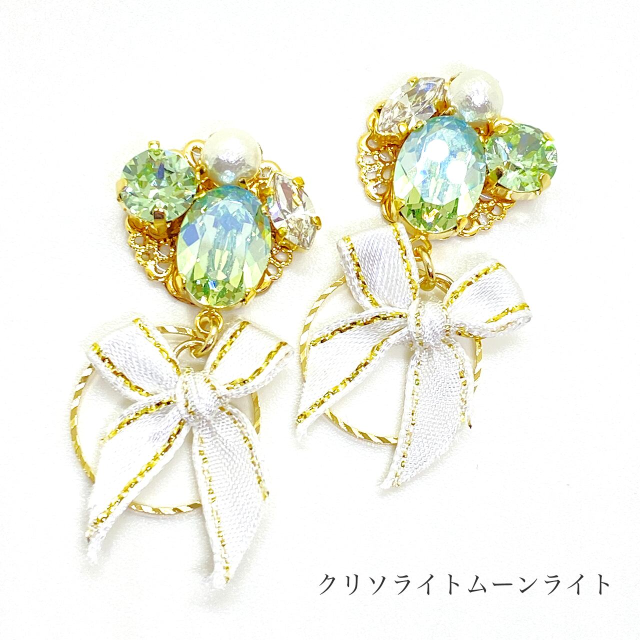 貴和クリスタル新色とコットンパール、サテンリボンのイヤリングです。