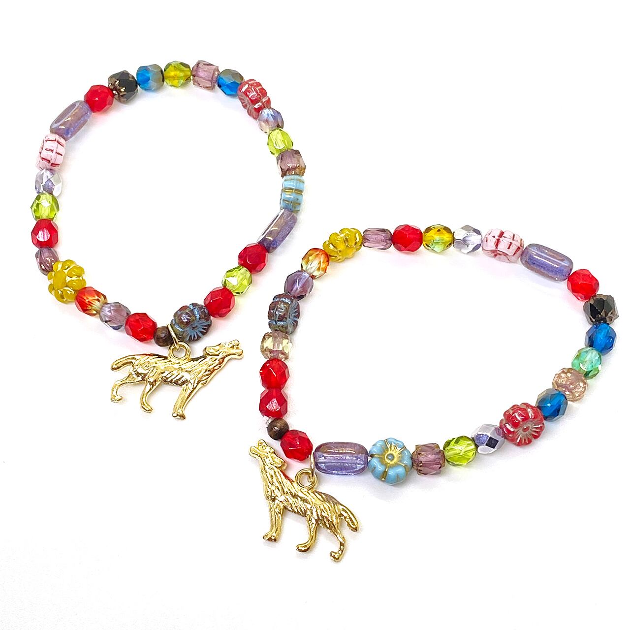 チェコビーズとオオカミのチャームを使ったブレスレットです。