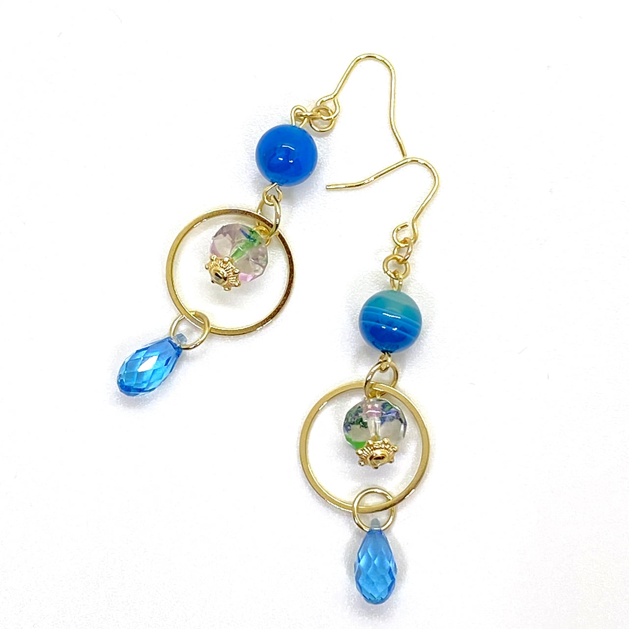 スワロフスキーとチェコビーズ、瑪瑙のピアスです。
