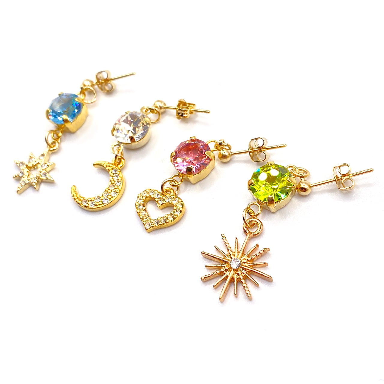 チャームとスワロフスキーのピアスです。4個1セットになります。